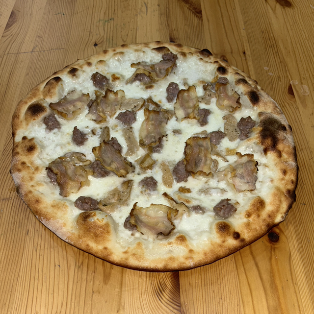 mozzarella, funghi porcini, salsiccia e lardo di Colonnata
